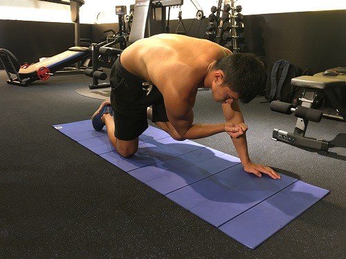 伸直后停一秒,把注意力集中在躯干上,再将手脚收回并且使膝盖、手肘互碰,最后再伸直、放下、回到四足跪姿。