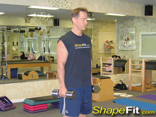 身体直立,两脚开立与肩同宽,上体呈挺胸收腹紧腰状。两手对握哑铃屈肘弯举于体侧,上臂紧贴躯干固定夹肘。练习开始以肘关节为轴,前臂按顺时针或逆时针方向由屈到伸,再由伸到屈的进行绕环运动。屈肘时手心相对,伸肘时手心朝后。重复练习