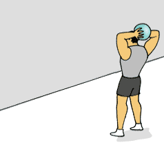 2.向头部后方举实力球,用最大力量将球向前方的墙壁投出。